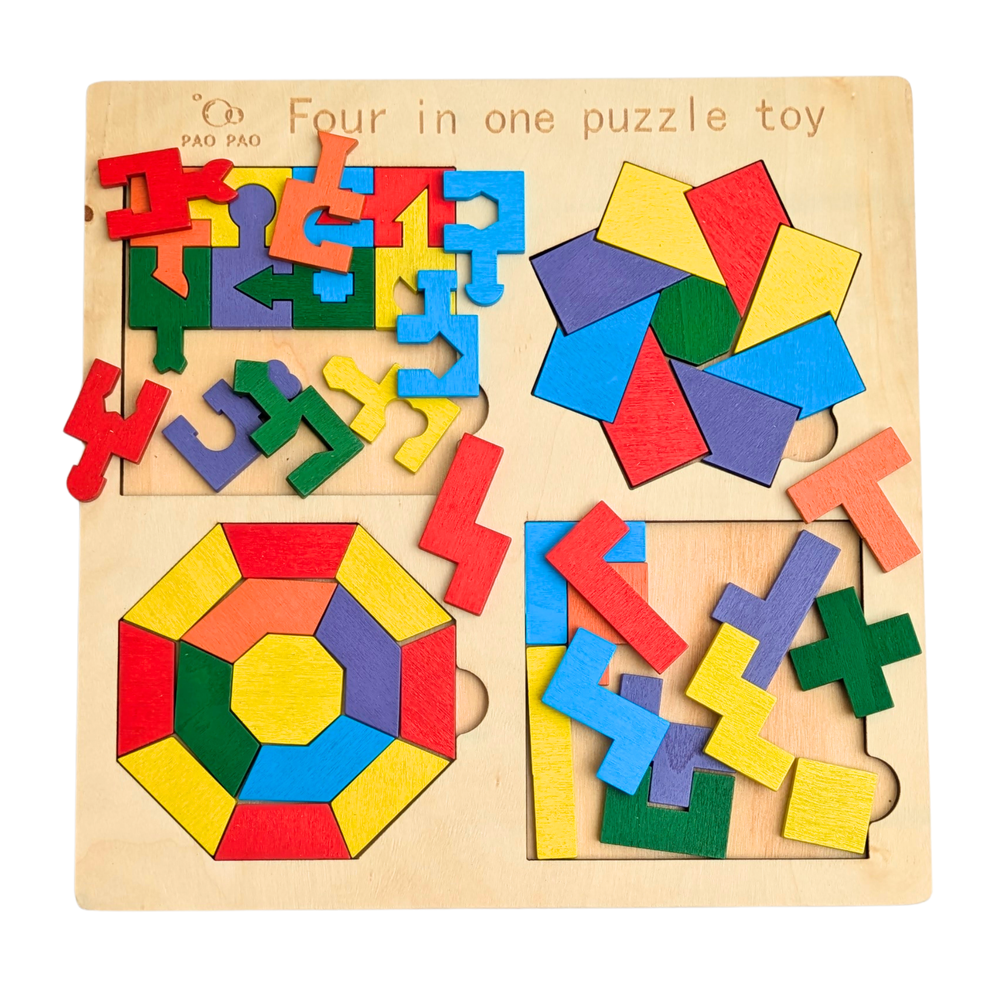 Wooden 4-in-1 Puzzle Board – Shape & Logic Learning Toy