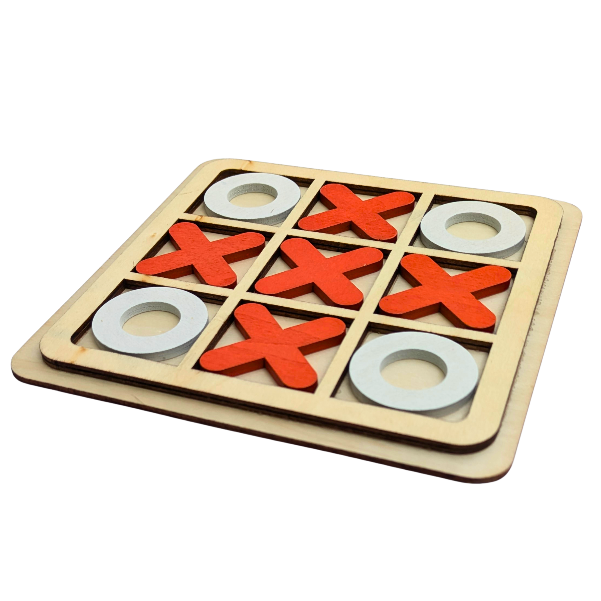 The board features smooth wooden X and O pieces that fit neatly into the grid, encouraging children to take turns, plan moves, and think ahead. Playing this game helps develop logical thinking, problem-solving skills, turn-taking, and early strategic awareness in a fun and simple way.